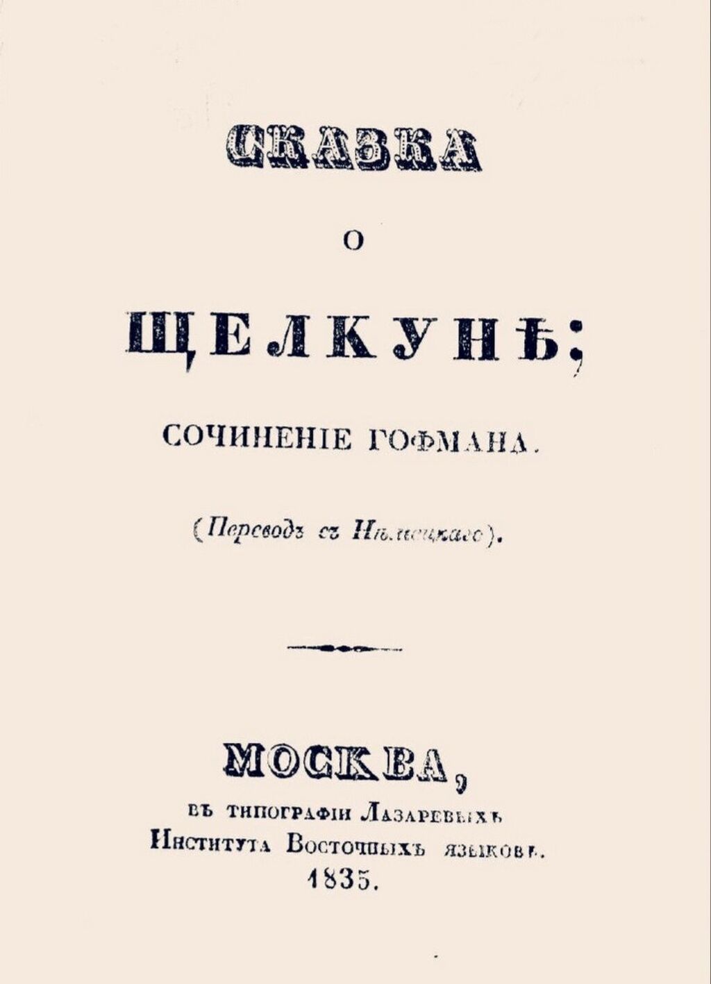 Затем было еще девять переводов сказки, в которых главного персонажа называли «Щелкушка», «Щелкун», «Человечек-щелкушка» и «Грызун орехов». И только 1894 году, в переводе Зинаиды Журавской, главный персонаж сказки был впервые назван в русской литературе привычным для нас именем.