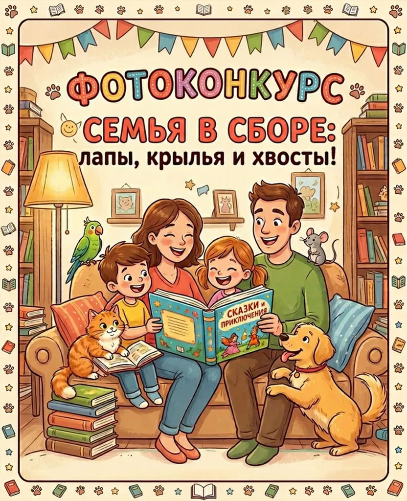 К участию в конкурсе приглашаются семьи, дружащие с книгой и имеющие домашних питомцев.