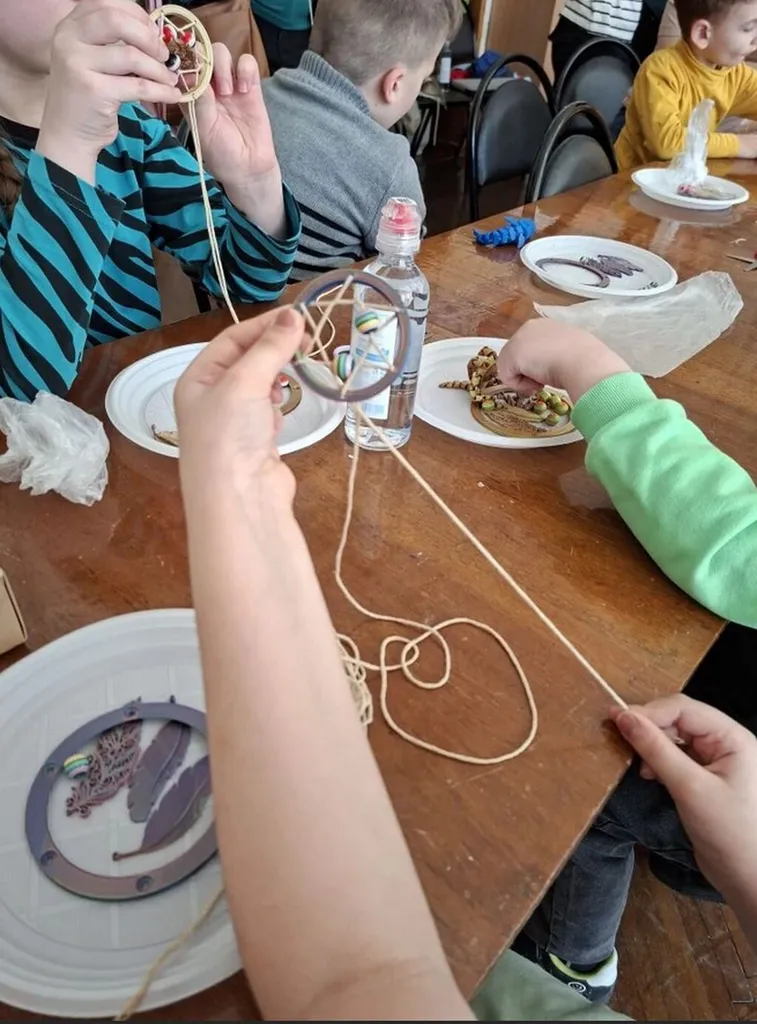 Каждый участник сплел оригинальную подвеску, которую можно использовать как амулет для добрых снов и положительной атмосферы в доме, а также прикрепить к рюкзачку или сумке и носить с собой.