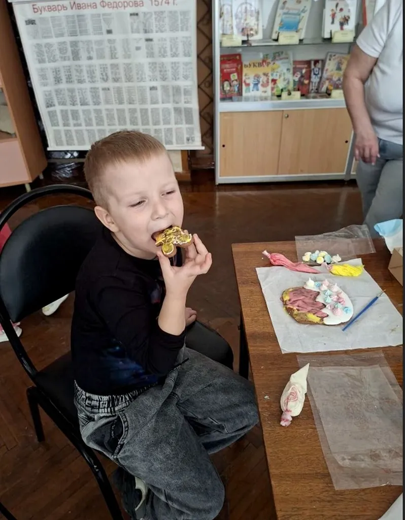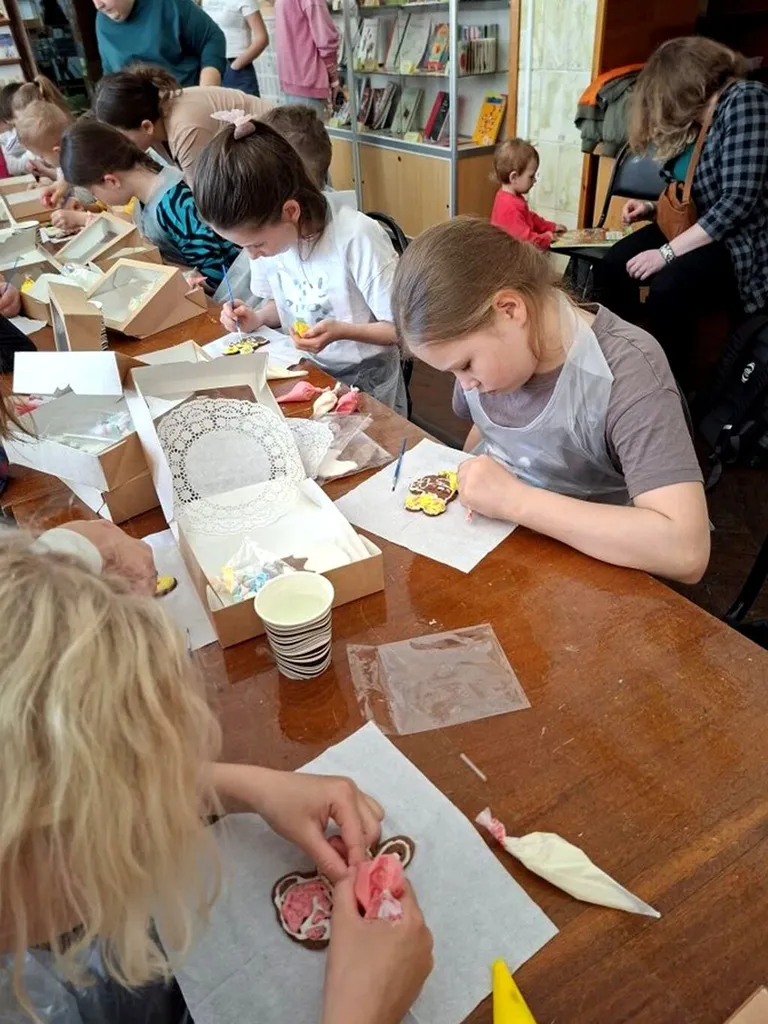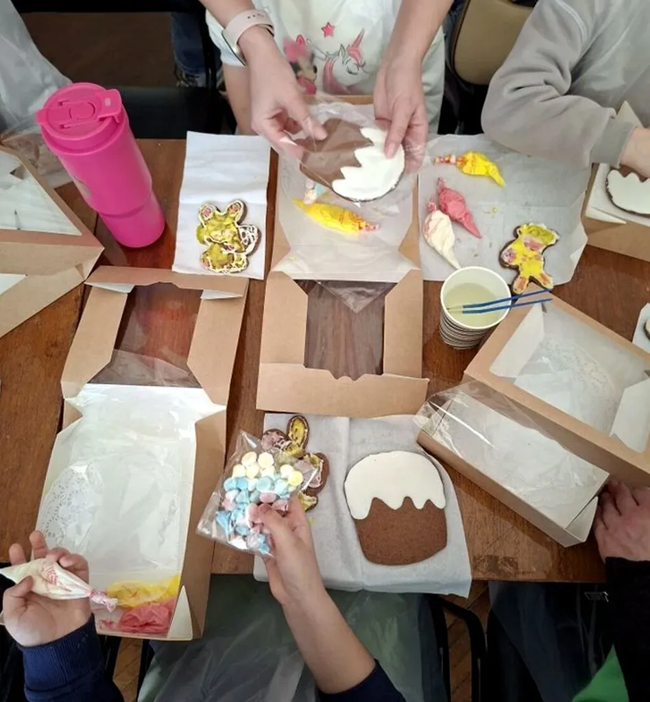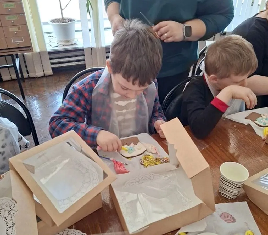 В первые апрельские выходные на мастер-классах в ЦГДБ им. А. С. Пушкина ребята учились расписывать разноцветной глазурью готовые имбирные пряники. С помощью мастера они применяли базовые техники росписи, наносили контур рисунка и заполняли его глазурью, распределяя ее по поверхности.